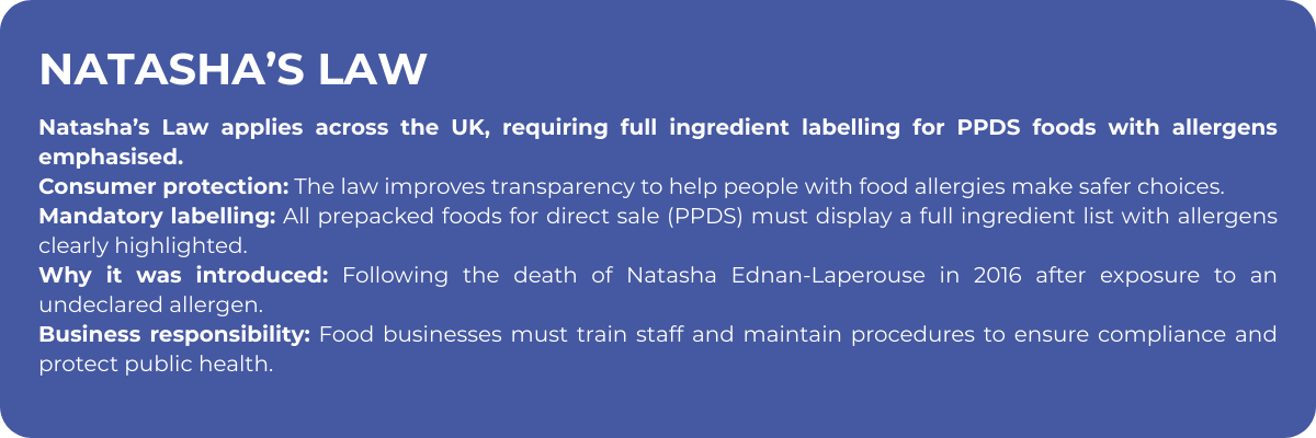 Natasha’s Law represents a major step forward in protecting people with food allergies. By requiring full ingredient and allergen labelling on pre-packed food, it reduces uncertainty and saves lives.